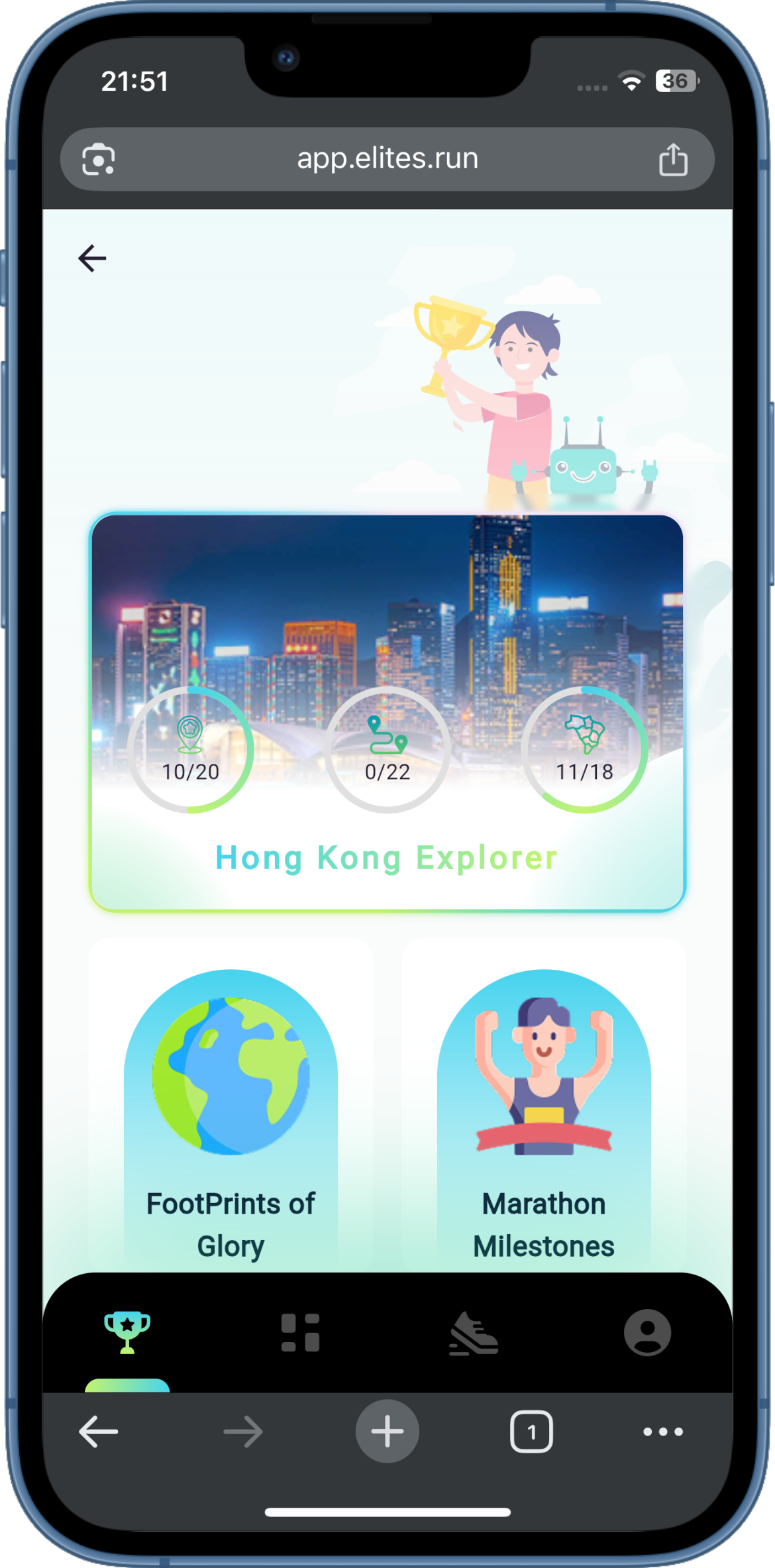 Whether it’s the Clock Tower, Dragon’s Back, or The Peak—collect exclusive badges when you run near city attractions. It’s running meets treasure hunting.Smash Milestones & Unlock Your Marathon Glory